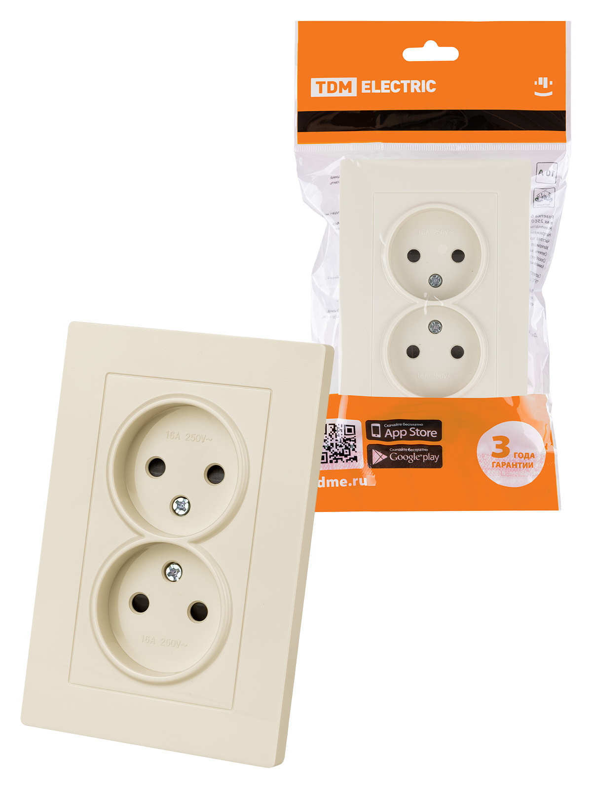 Наименование: Розетка двойная 2П 10А 250В с защ. шт. сл. кость "Сенеж" TDM
