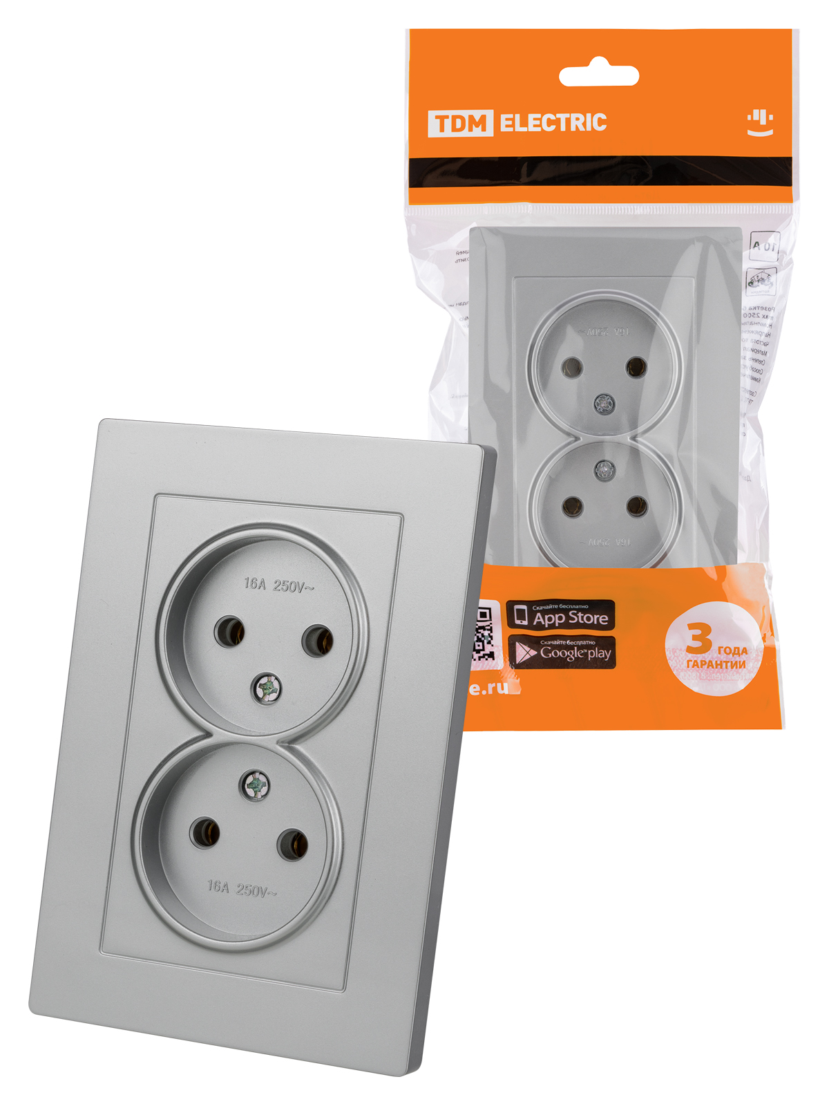 Наименование: Розетка двойная 2П 10А 250В серебр. металлик "Сенеж" TDM