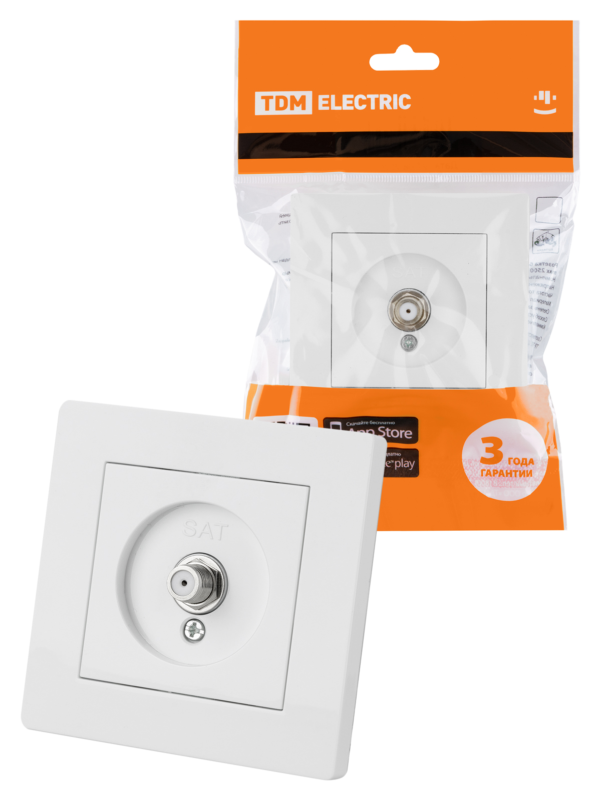 Наименование: Розетка SAT (F-разъем) 0-2400МГц белая "Сенеж" TDM