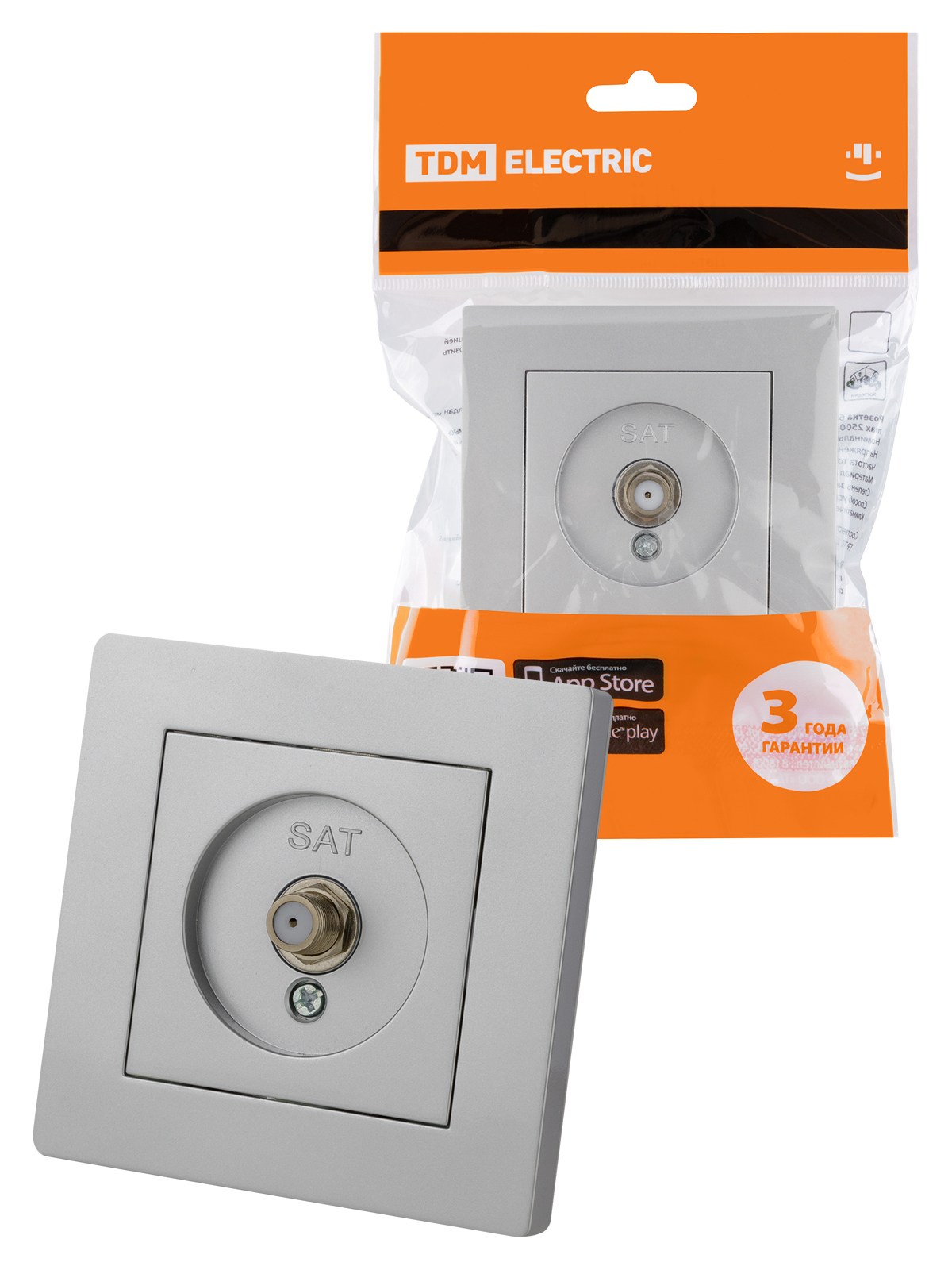 Наименование: Розетка SAT (F-разъем) 0-2400МГц серебр. металлик "Сенеж" TDM
