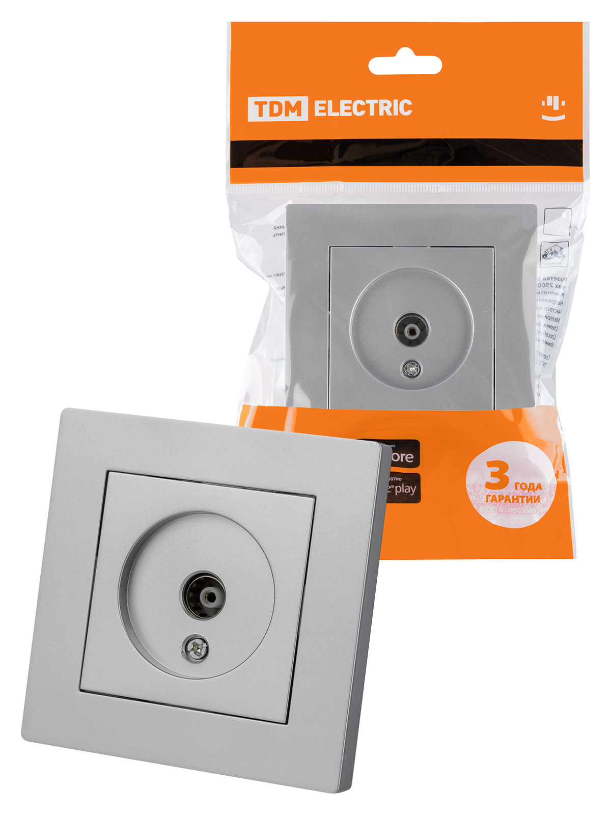 Наименование: Розетка телевизионная простая (0-2400МГц, "мама") серебр. металлик "Сенеж" TDM