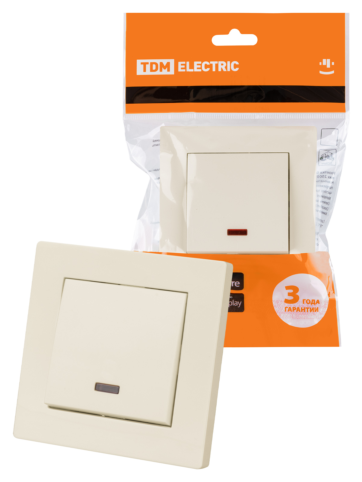 Наименование: Выключатель 1 кл. с подсветкой 10А сл. кость "Сенеж" TDM