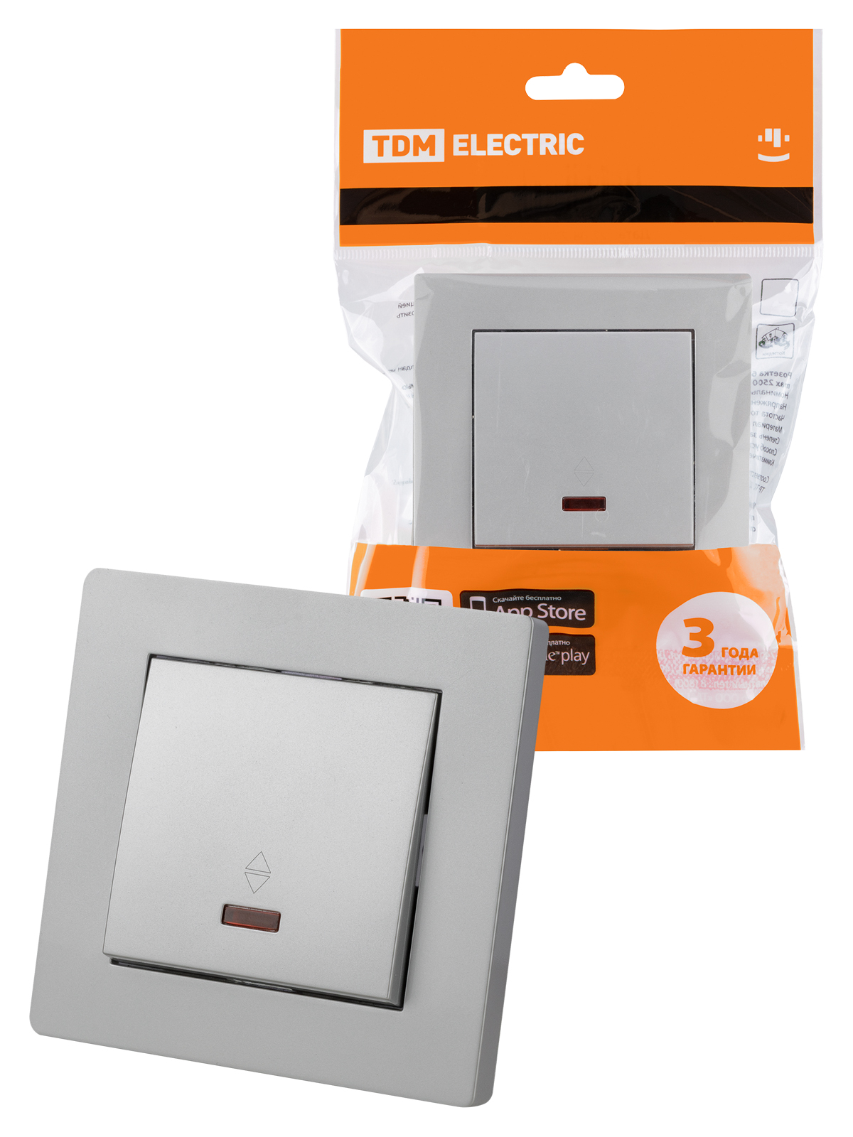 Наименование: Выключатель на 2 направления 1 кл. с подсветкой 10А серебр. металлик "Сенеж" TDM