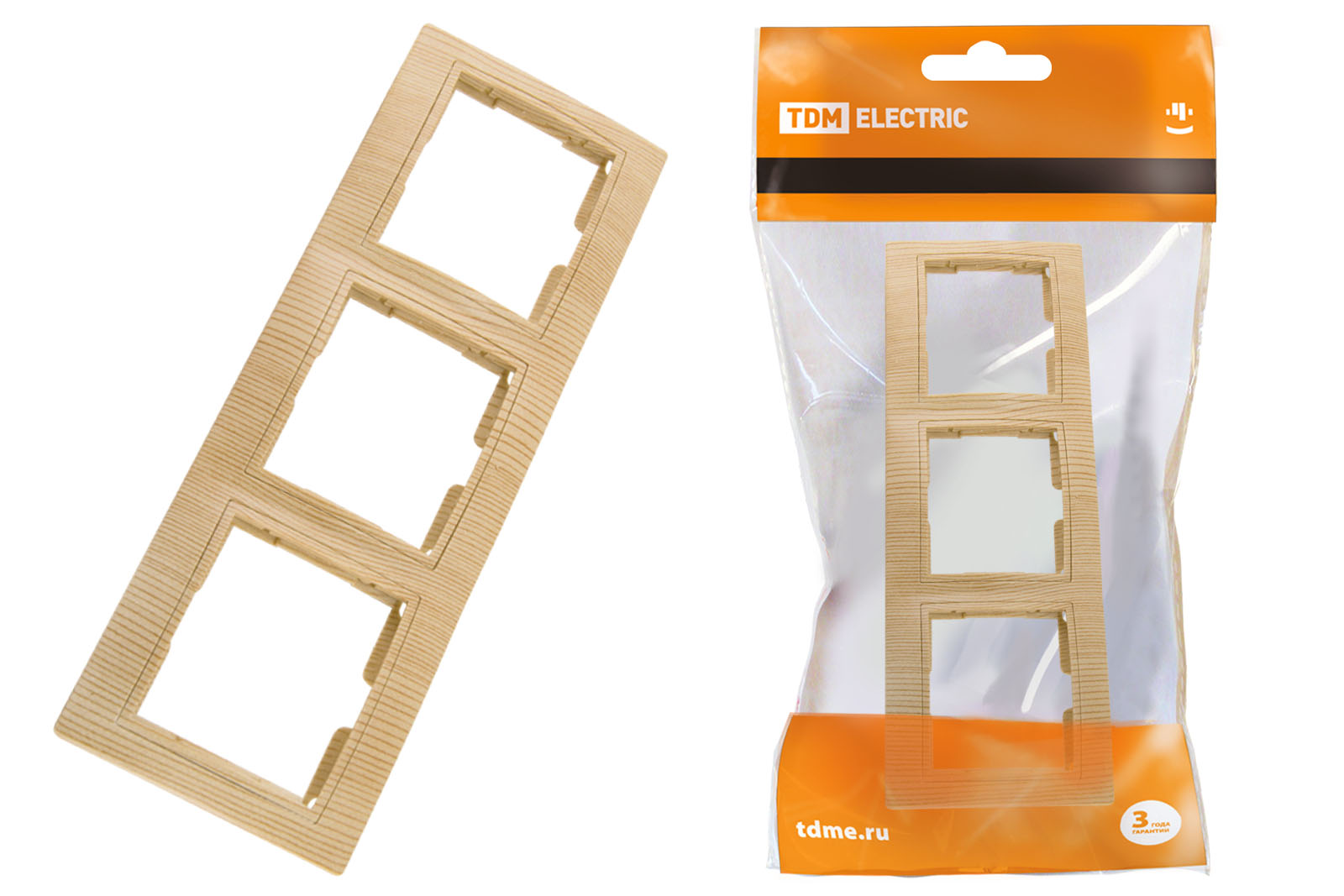 Наименование: Рамка 3-х постовая горизонтальная "ЭКО" (сосна) "Таймыр" TDM