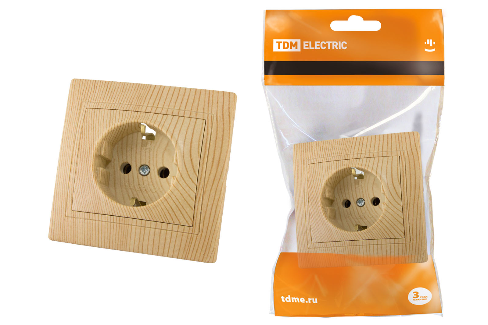 Наименование: Розетка 2П+З 16А 250В "ЭКО" (сосна) "Таймыр" TDM