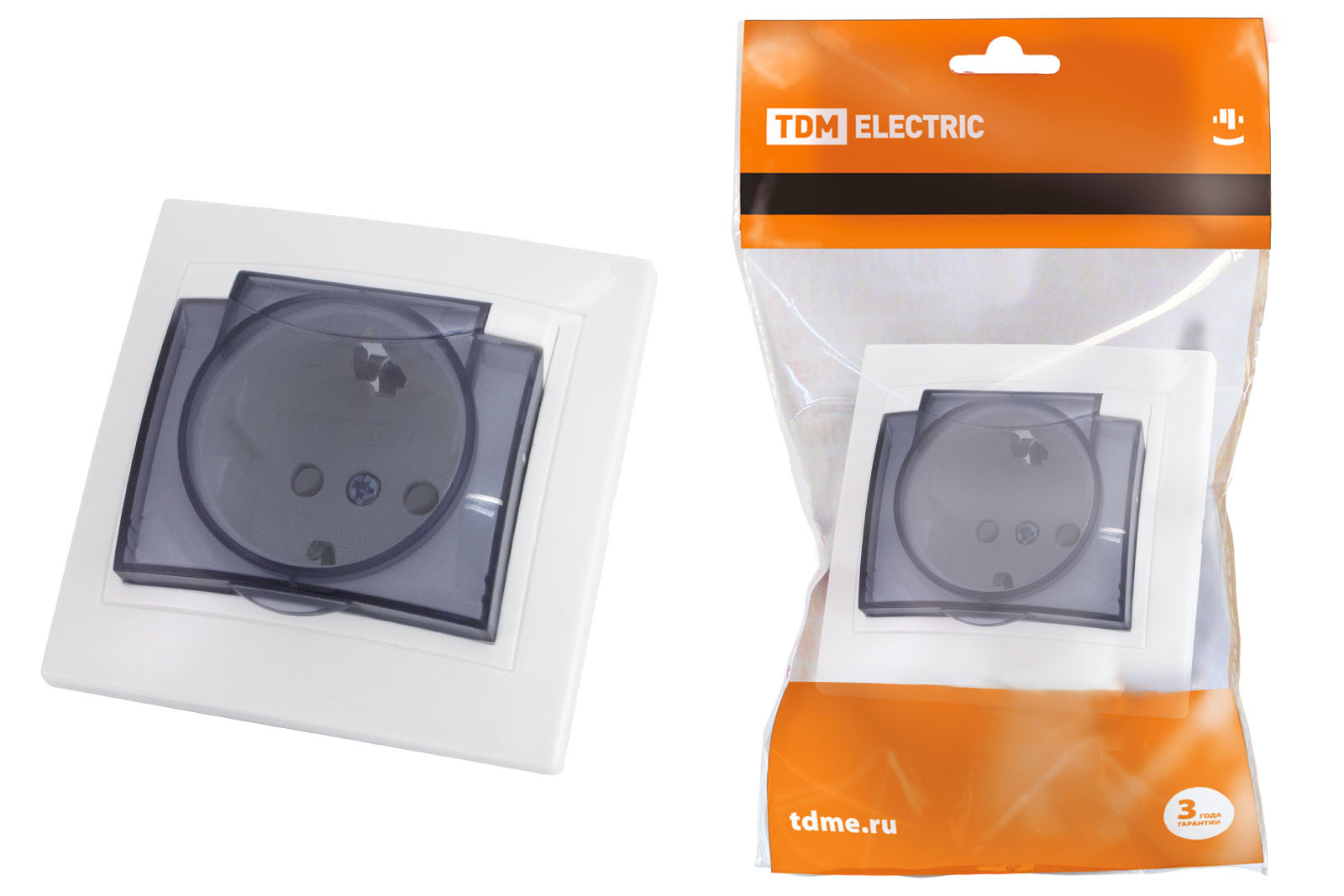 Наименование: Розетка 2П+З с защ. шт. и крышкой 16А 250В IP44 белая "Таймыр" TDM