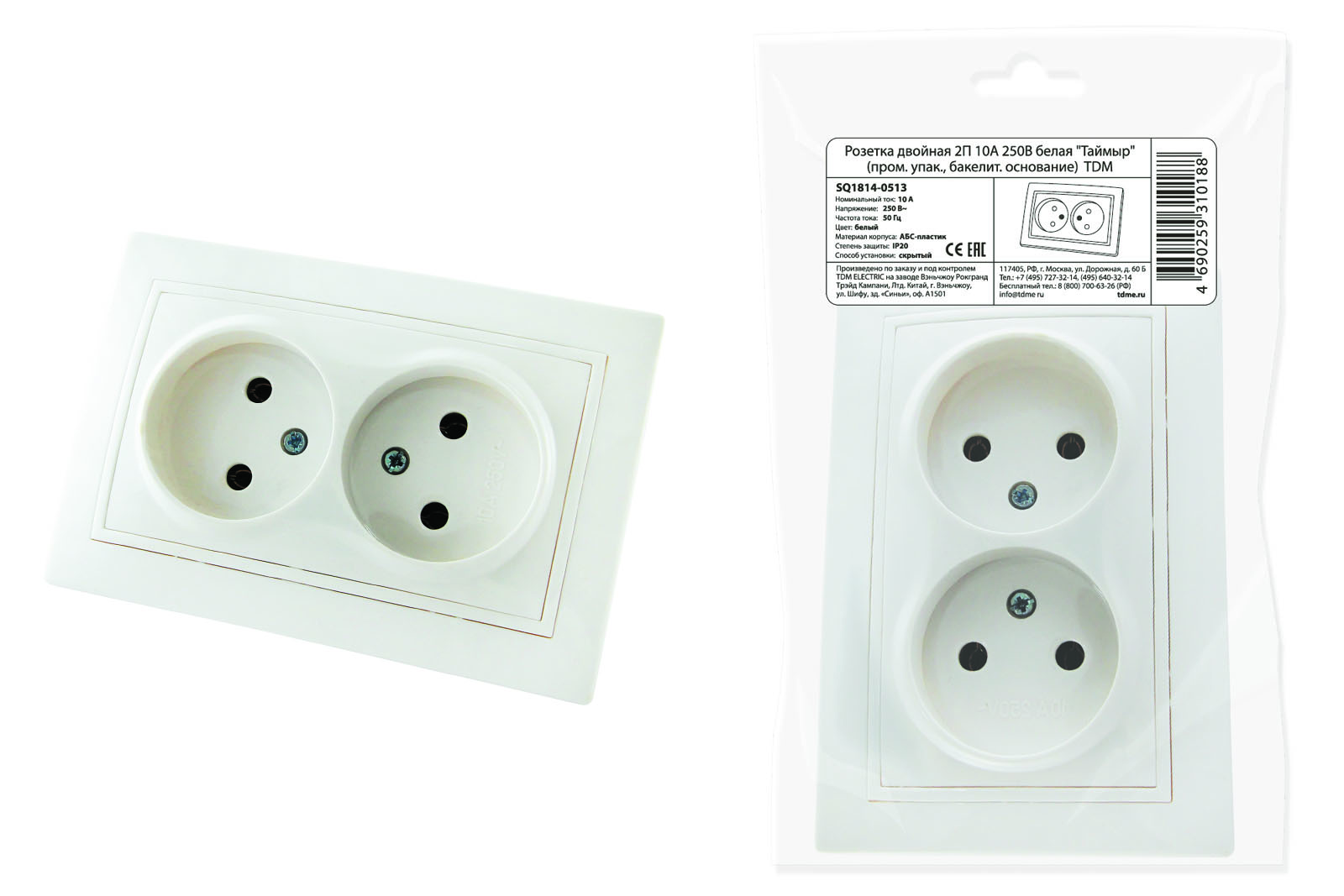 Наименование: Розетка двойная 2П 10А 250В белая "Таймыр" (пром. упак., бакелит. основание) TDM
