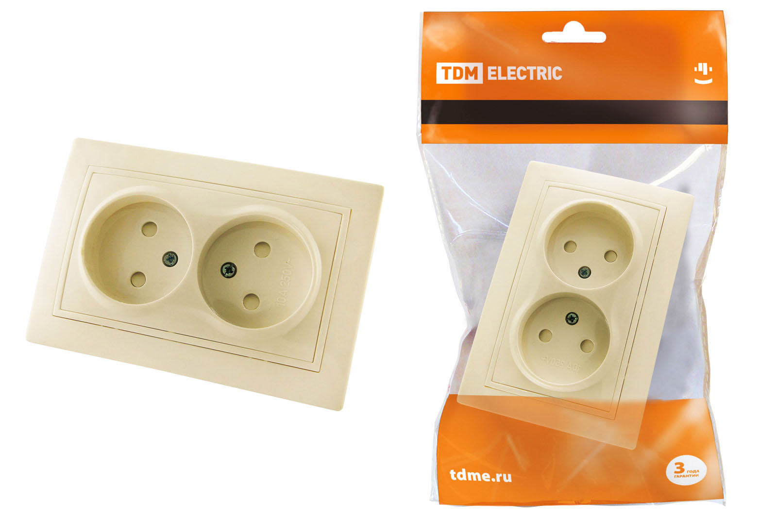 Наименование: Розетка двойная 2П с защ. шт. 10А 250В сл. кость "Таймыр" TDM