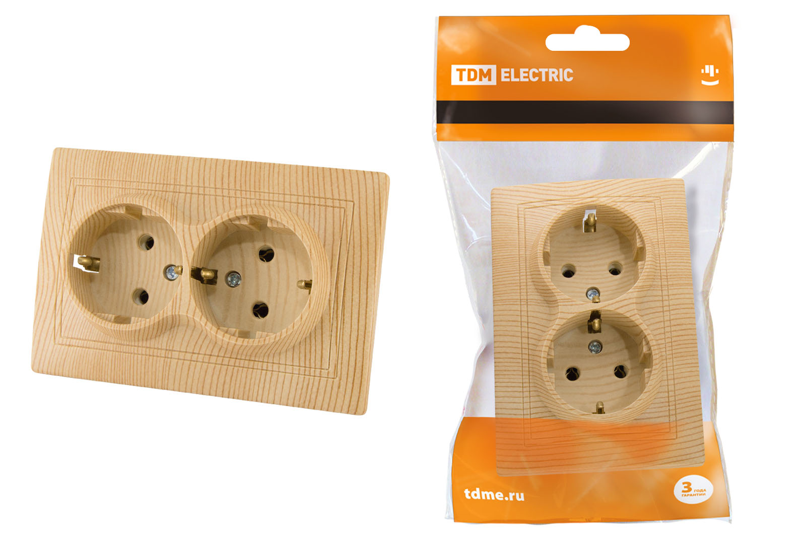 Наименование: Розетка двойная 2П+З 16А 250В "ЭКО" (сосна) "Таймыр" TDM