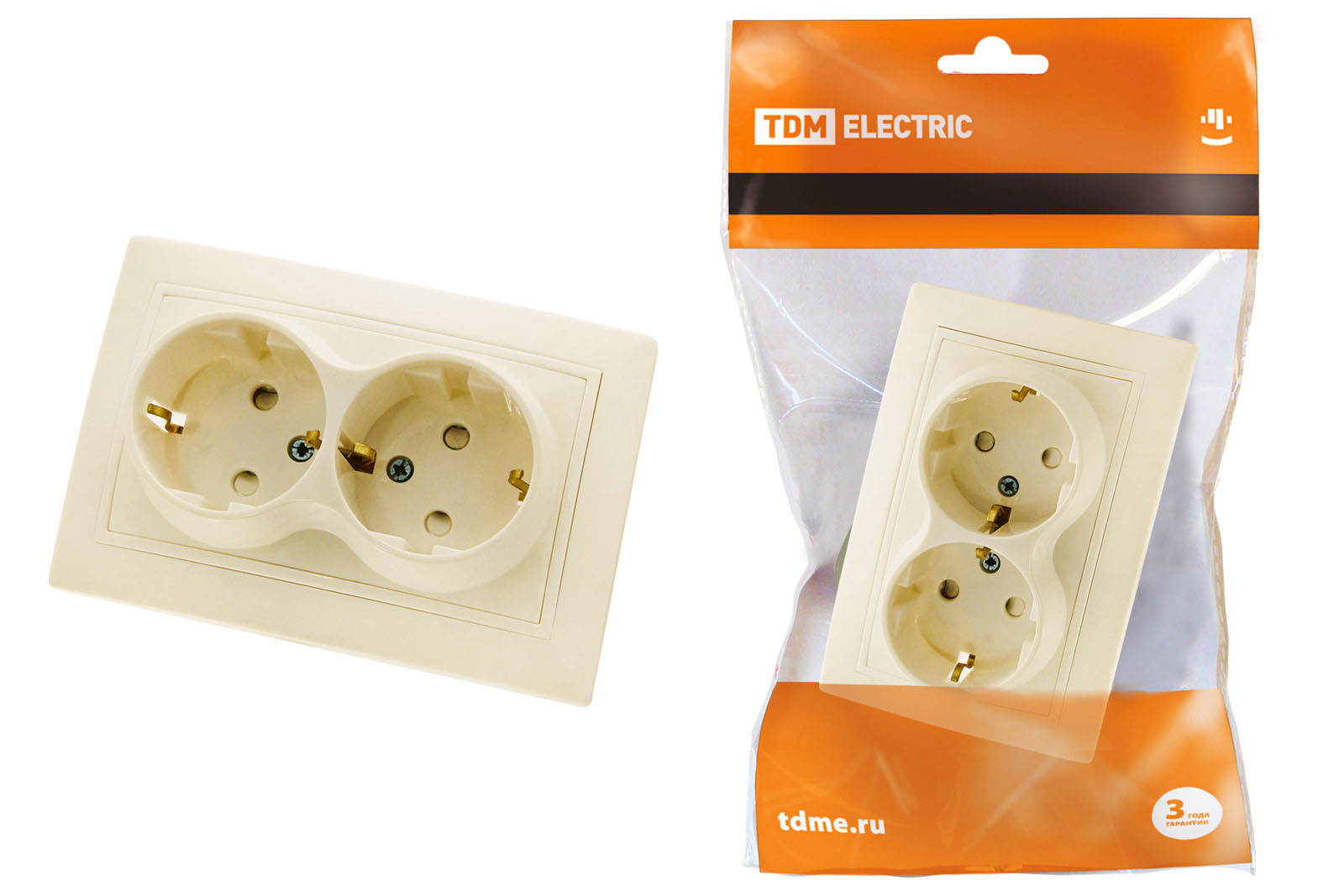 Наименование: Розетка двойная 2П+З с защ. шт. 16А 250В сл. кость "Таймыр" TDM