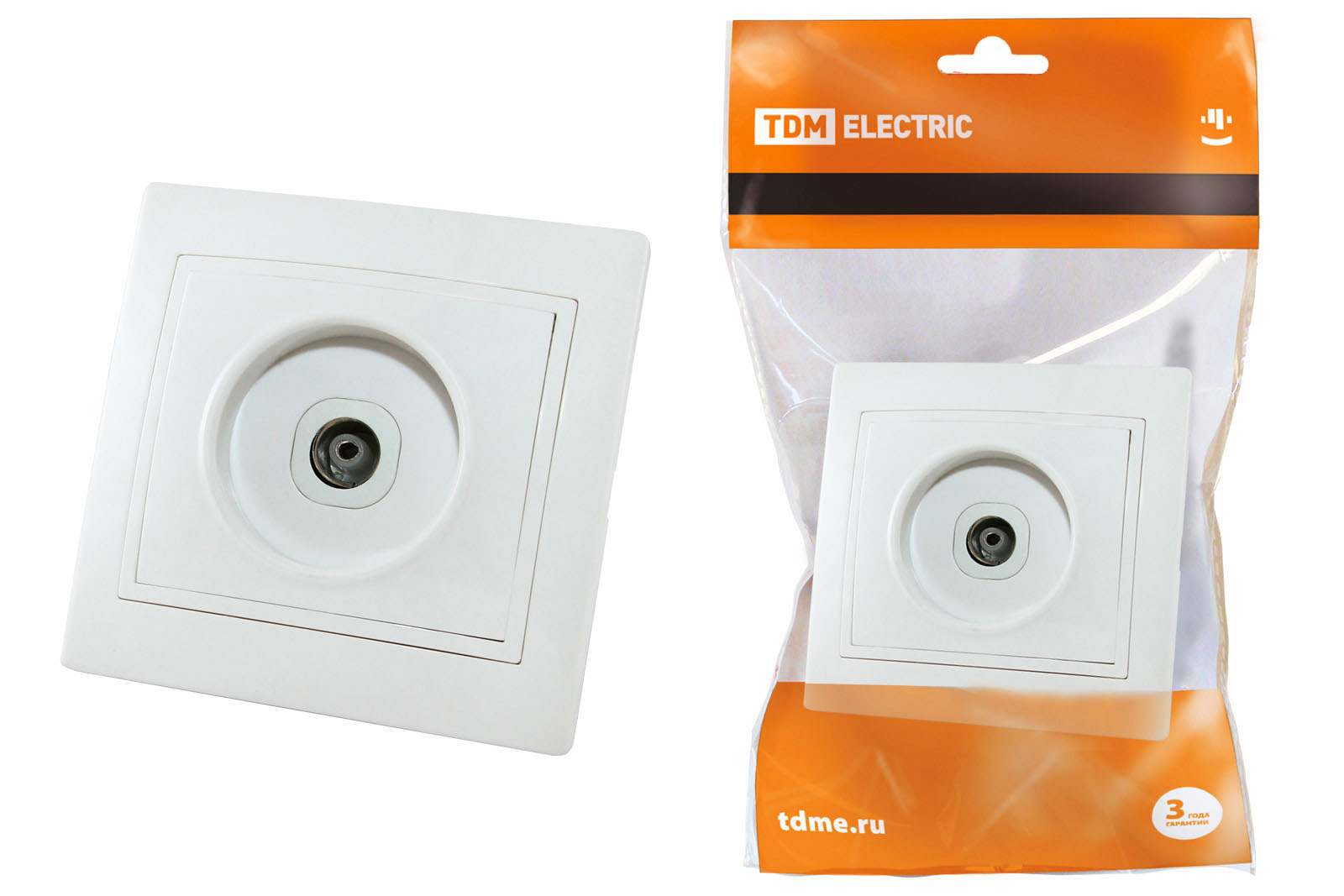 Наименование: Розетка телевизионная простая (0-2400МГц, "мама") белая "Таймыр" TDM