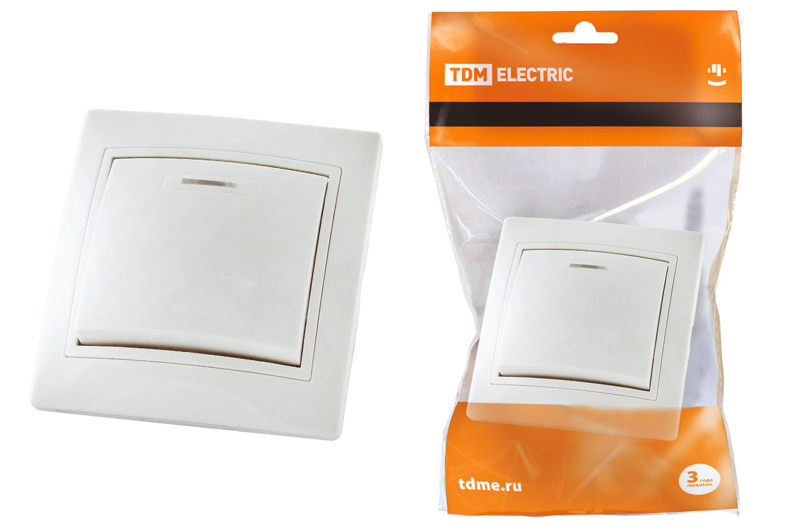 Наименование: Выключатель 1 кл. с подсветкой 10А белый "Таймыр" TDM