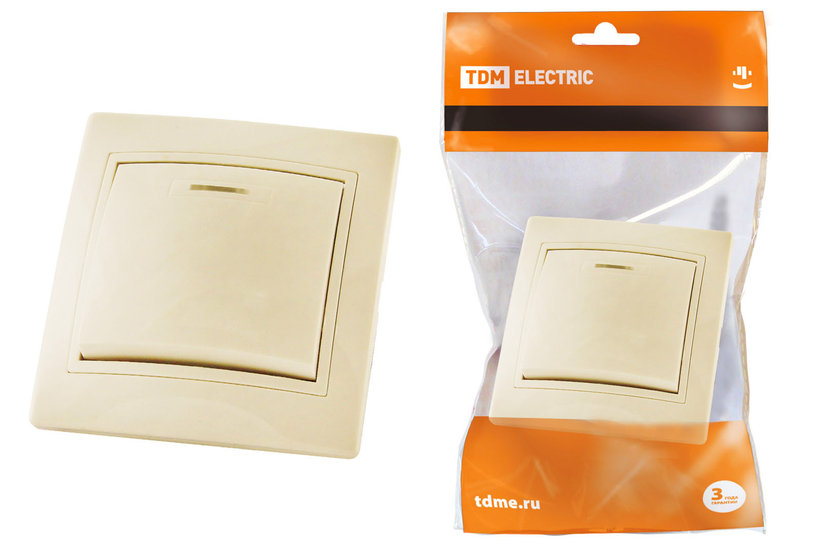 Наименование: Выключатель 1 кл. с подсветкой 10А сл. кость "Таймыр" TDM