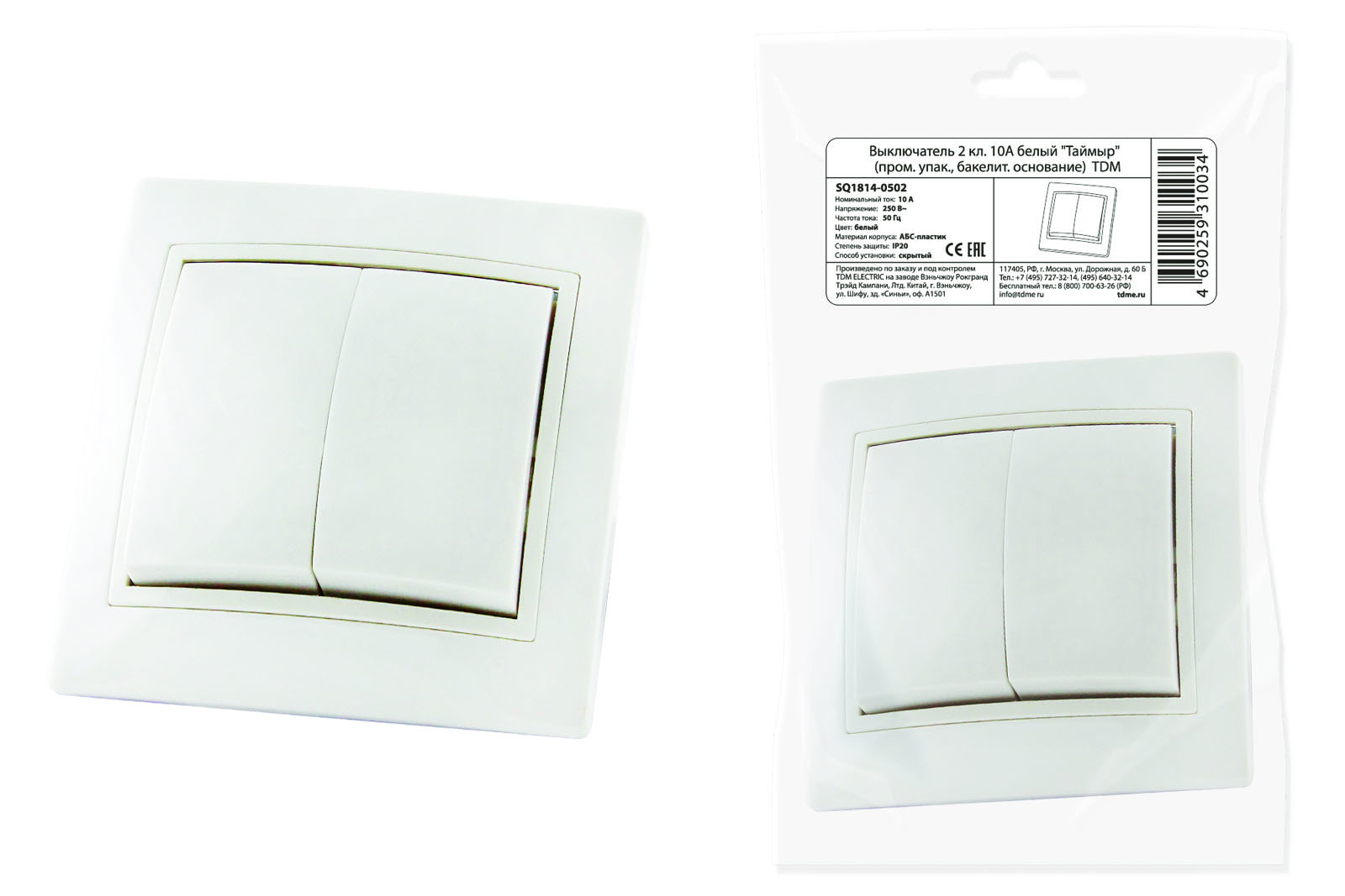 Наименование: Выключатель 2 кл. 10А белый "Таймыр" (пром. упак,, бакелит. основание) TDM