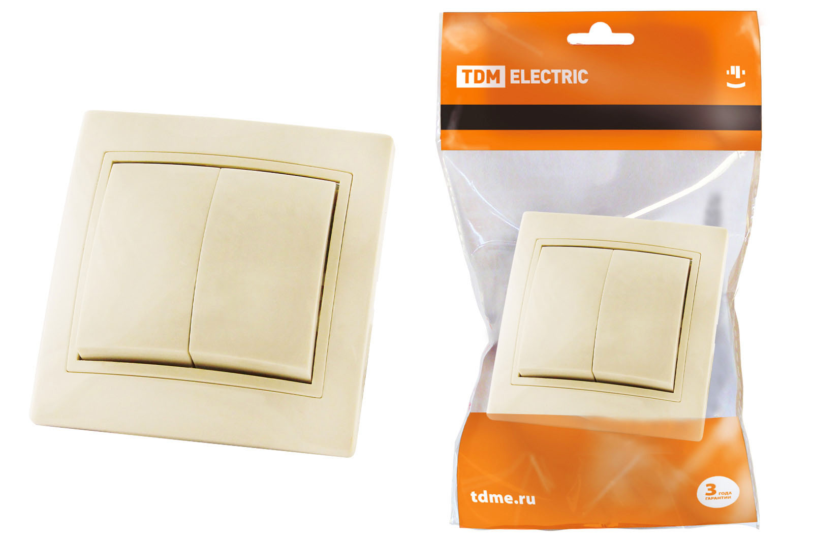 Наименование: Выключатель 2 кл. 10А сл. кость "Таймыр" TDM