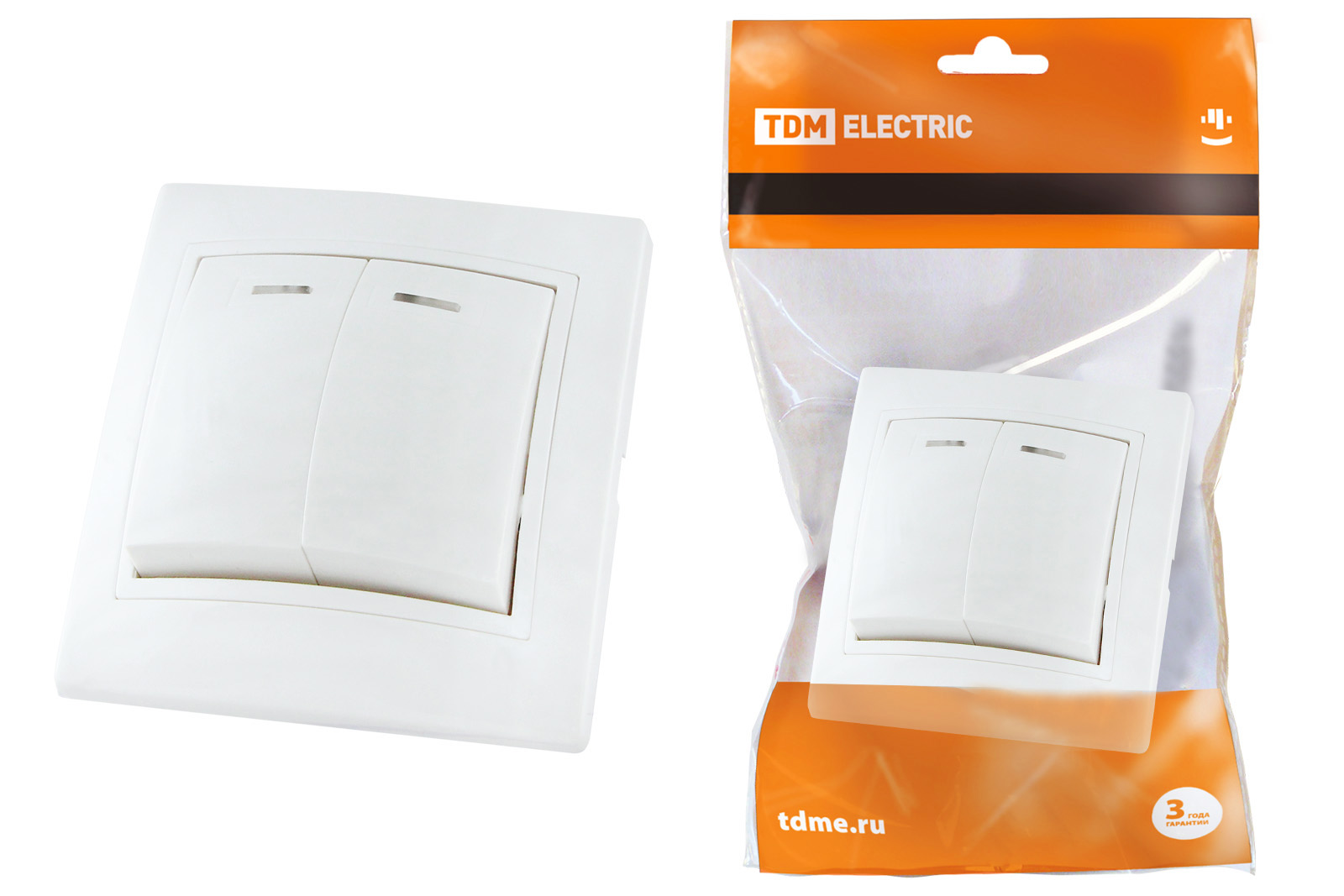 Наименование: Выключатель 2 кл. с подсветкой 10А белый "Таймыр" TDM