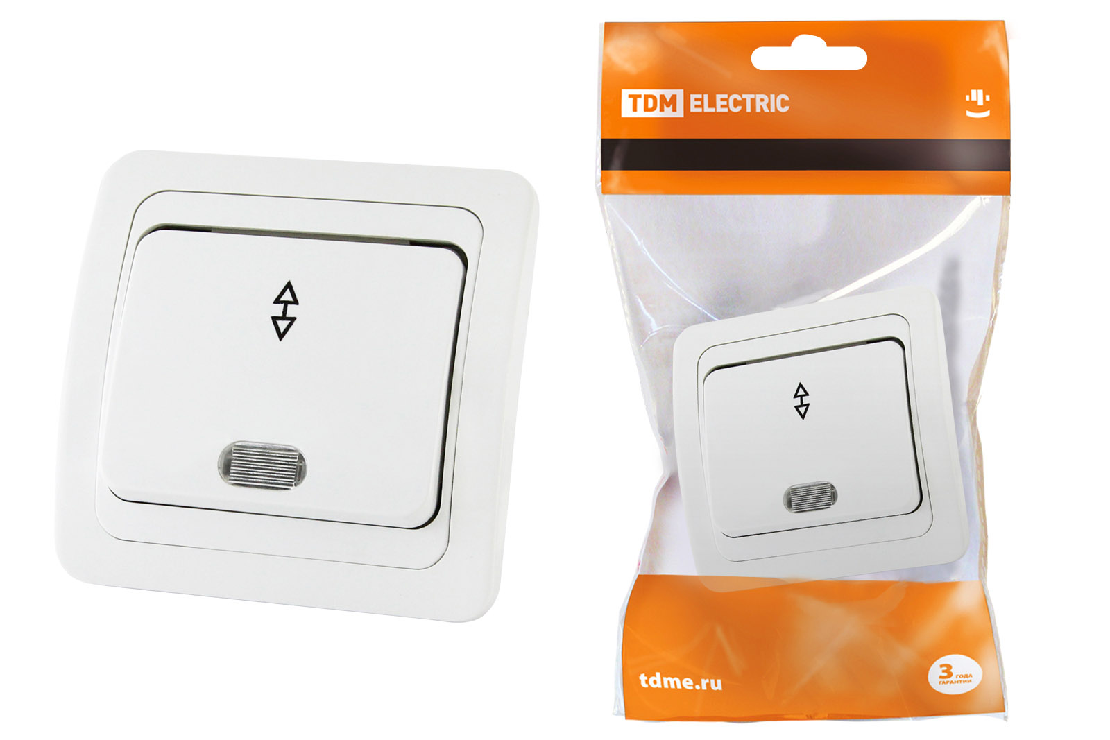 Наименование: Переключатель на 2 направления с подсветкой 10А белый "Валдай" TDM