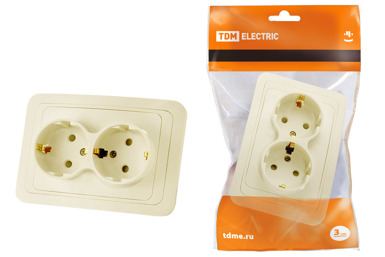 Наименование: Розетка двойная 2П+З 16А c защитными шторками сл. кость "Валдай" TDM