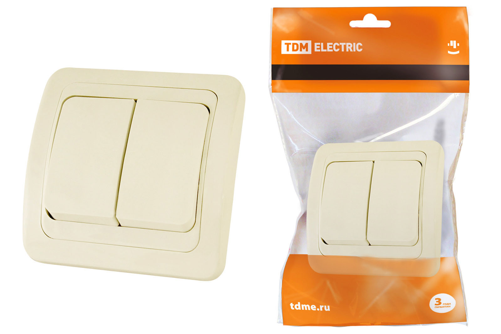 Наименование: Выключатель 2-кл. 10А сл. кость "Валдай" TDM