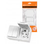 Блок (горизонтальный) выключатель 2-кл. + розетка 2П+З с з/ш БКВР IP54 белый "Вуокса" TDM