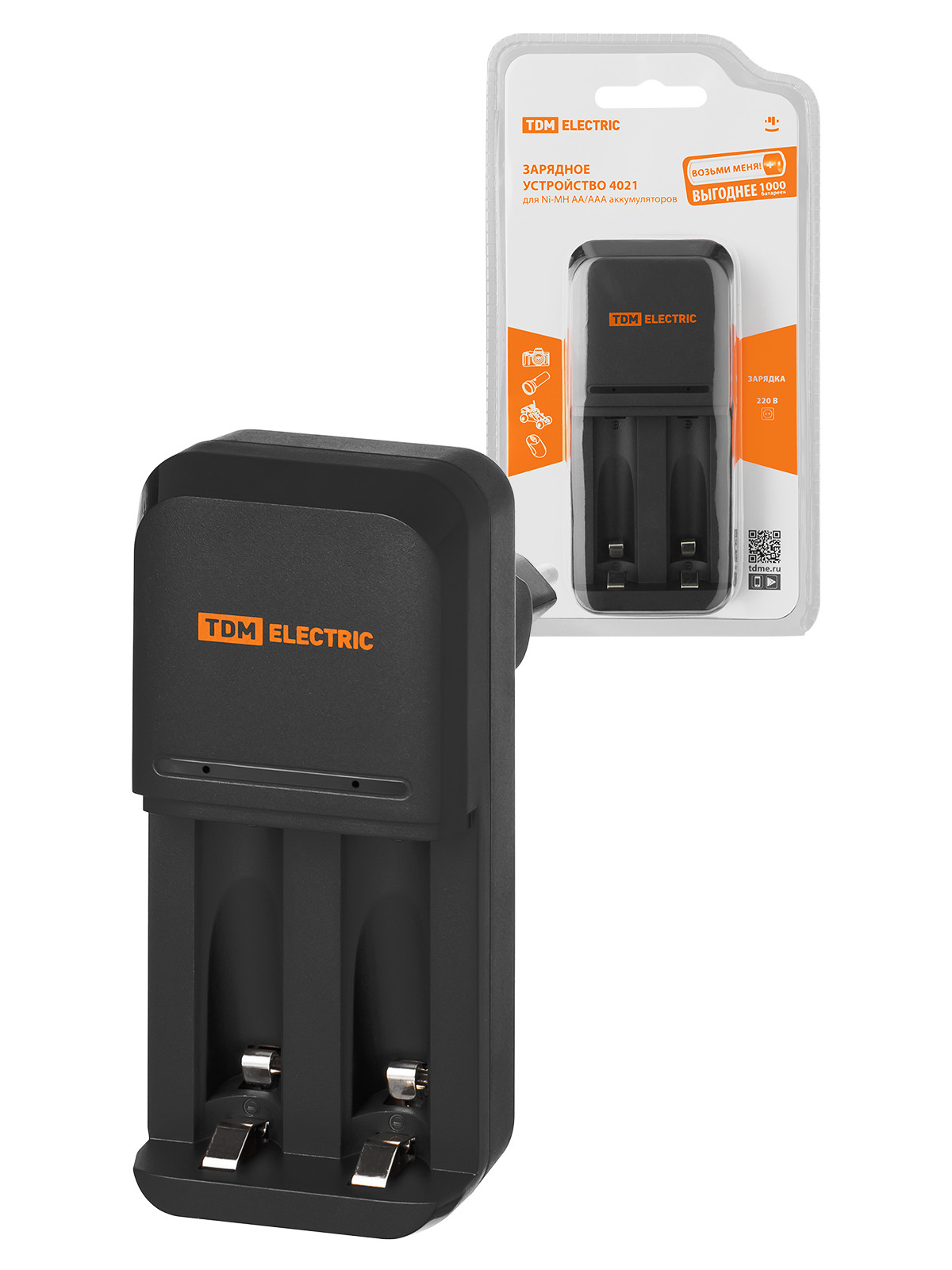 Наименование: Зарядное устройство 4021 (400 mA 2 слота АА/ААА 1 кан.), 220 В, TDM
