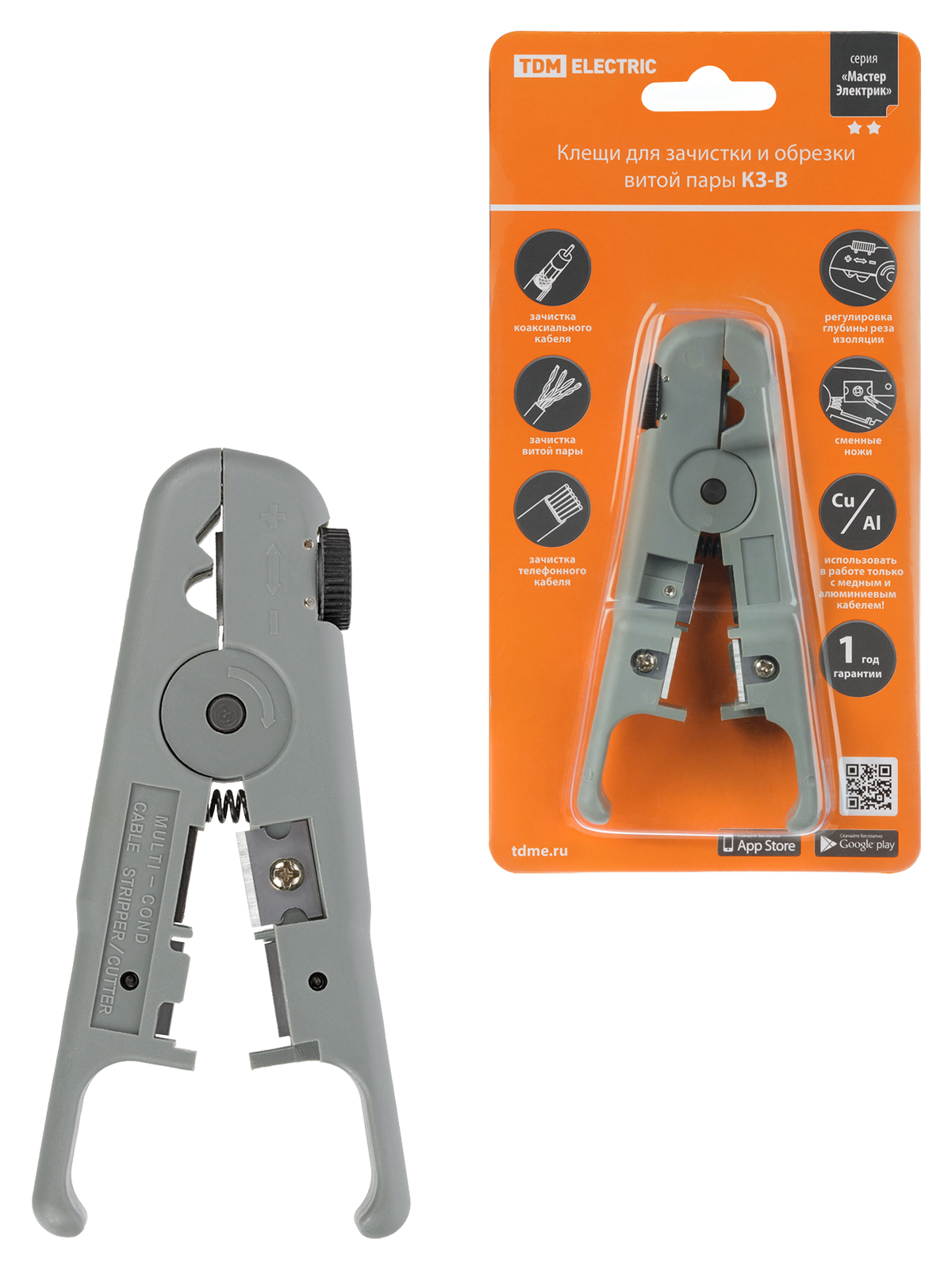 Наименование: Клещи КЗ-В, зачистка и обрезка витой пары UTP/SFTP регулируемый нож, «МастерЭлектрик» TDM