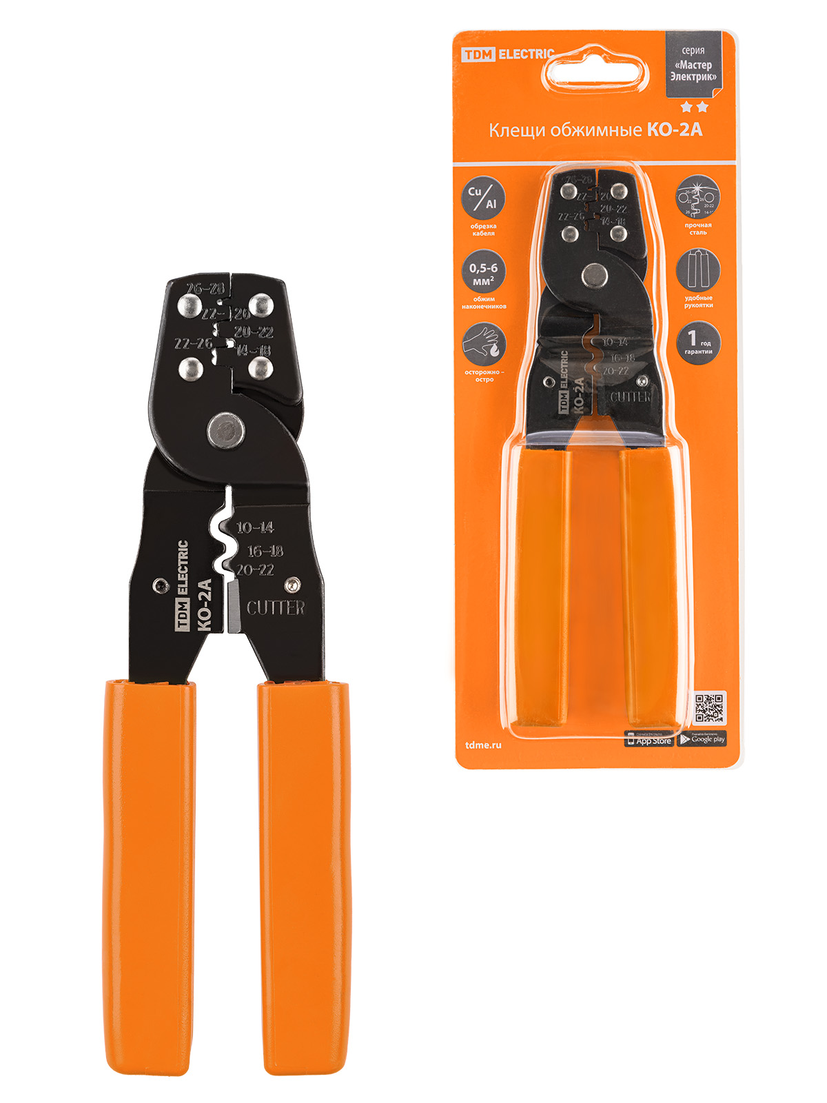 Наименование: Клещи обжимные КО-2А, обжим неизолированных автоклемм 0,5-6 мм, "МастерЭлектрик" TDM