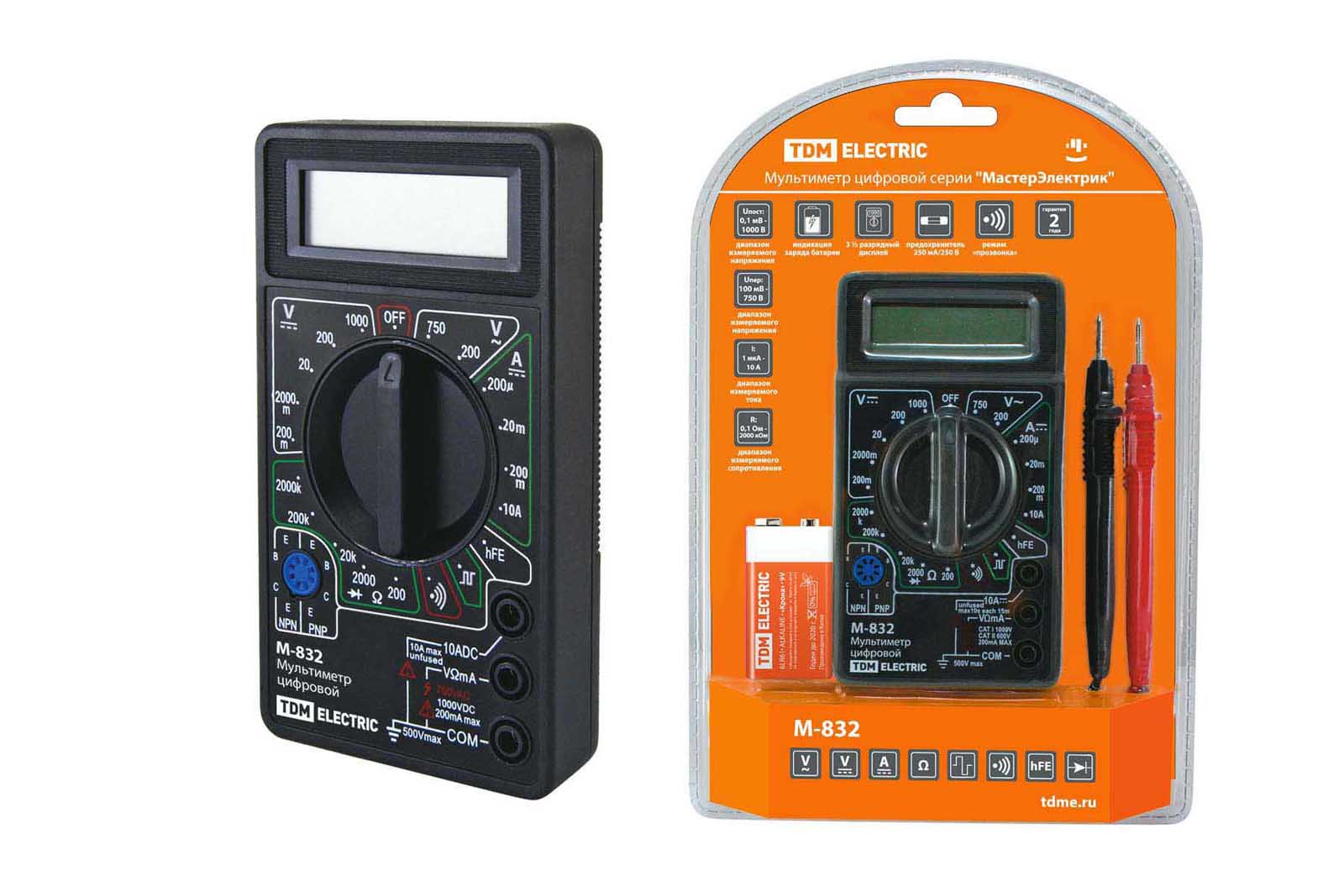 Наименование: Мультиметр цифровой серия "МастерЭлектрик" М-832 TDM