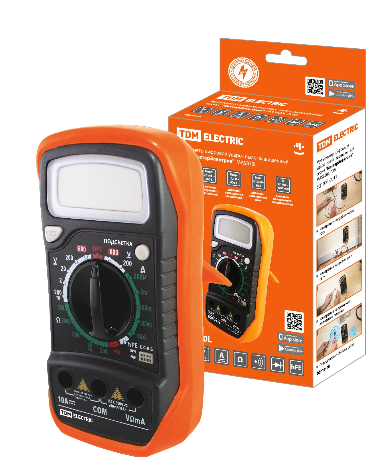 Мультиметр цифровой ударо- пыле- защищенный серия "МастерЭлектрик" MAS830L TDM