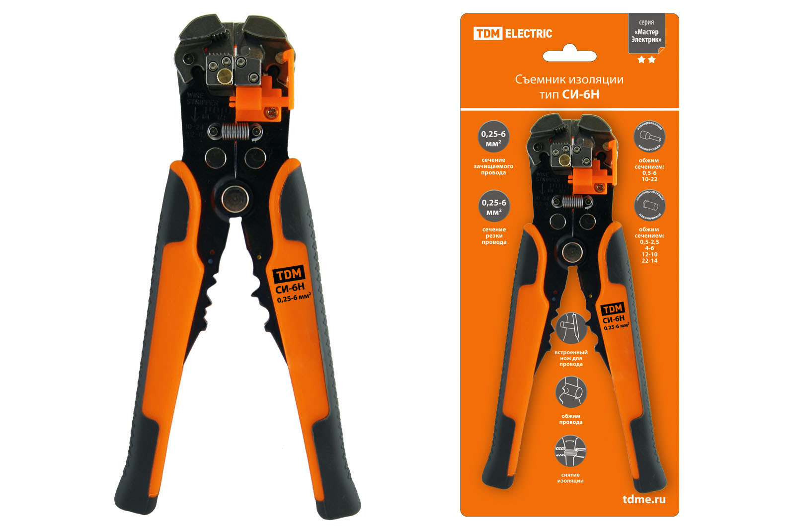 Наименование: Съемник изоляции СИ-6Н, сечения: зачистки 0,25-6 мм, обжима 0,5-6 мм "МастерЭлектрик" TDM