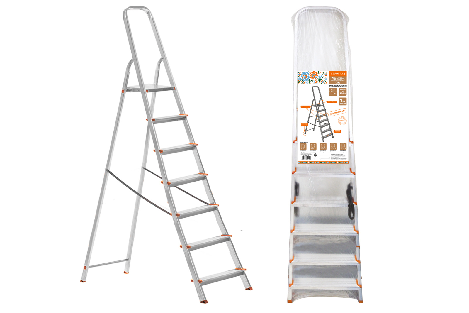 Наименование: Стремянка алюминиевая СА7, 7 ступеней, усиленный профиль h=1470 мм, Народная