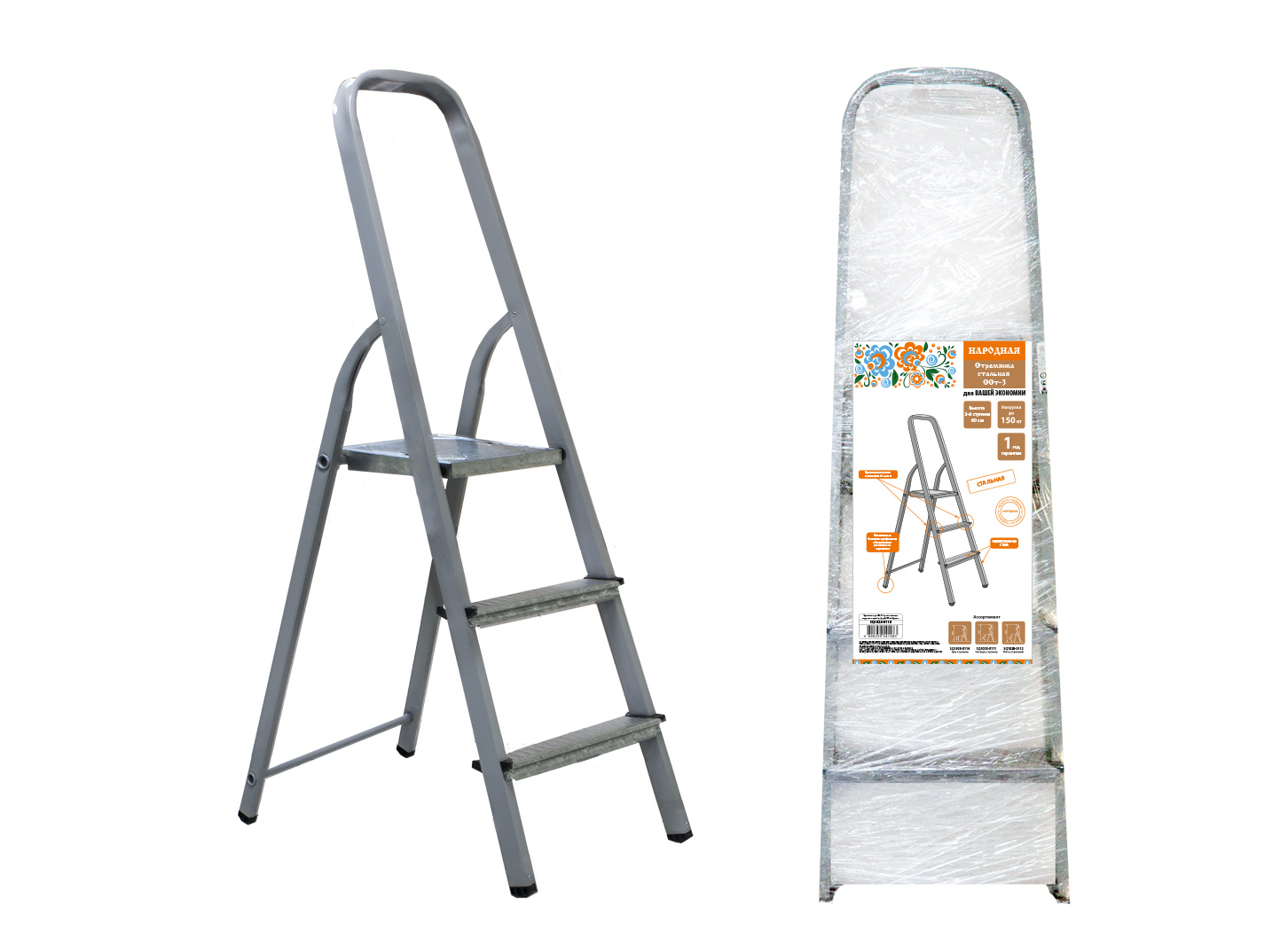 Наименование: Стремянка стальная ССт-3, 3 ступени с цинковым покрытием, стальной профиль, h=600 мм, Народная