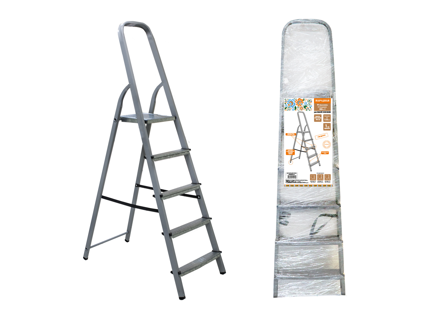 Наименование: Стремянка стальная ССт-5, 5 ступеней с цинковым покрытием, стальной профиль, h=1050 мм, Народная