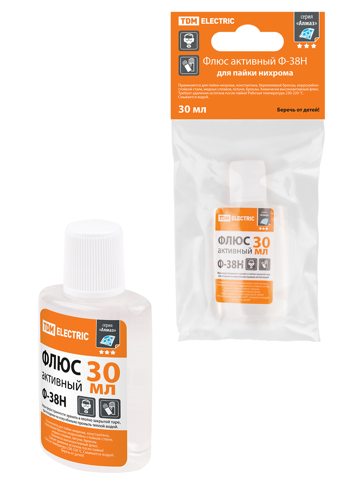 Наименование: Флюс активный Ф-38Н, для пайки нихрома, 30 мл, дозатор, инд. упаковка, серия "Алмаз" TDM