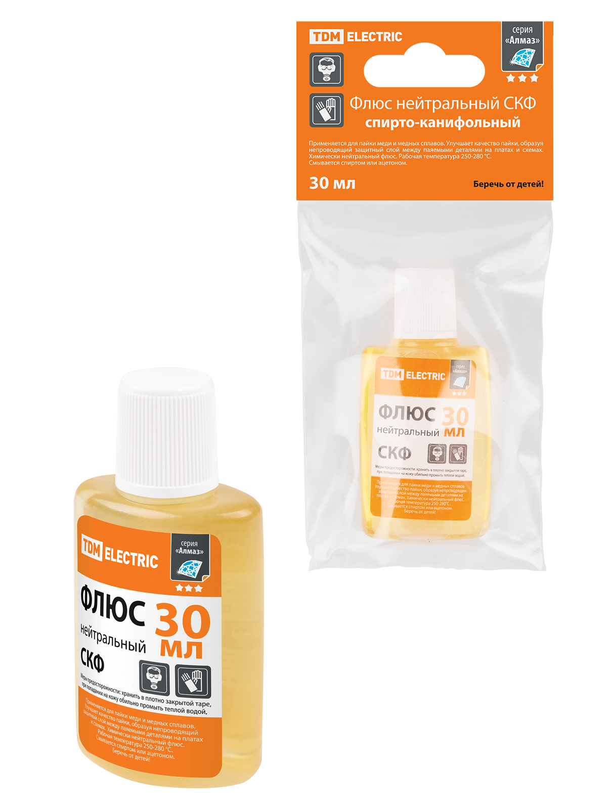 Наименование: Флюс нейтральный СКФ, спирто-канифольный, 30 мл, дозатор, инд. упаковка, серия "Алмаз" TDM