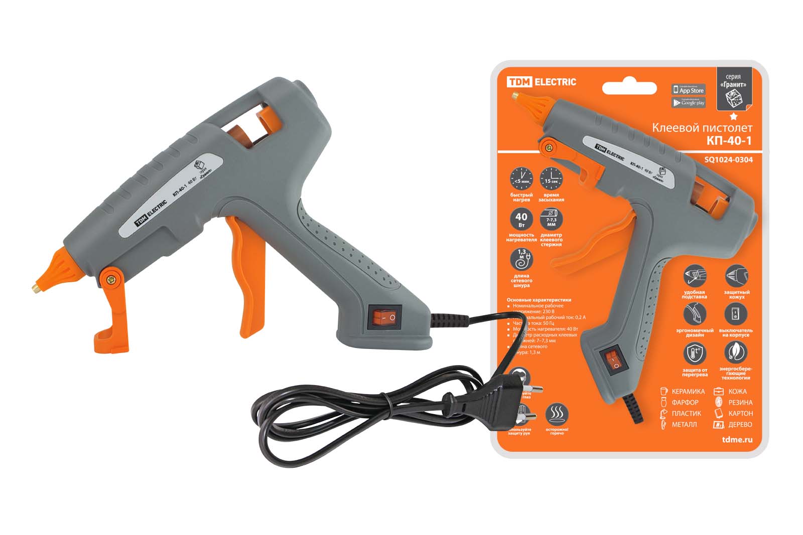 Наименование: Клеевой пистолет КП-40-1, 7 мм, подставка, выключатель, шнур 1,3 м, 40 Вт, Т=220 С "Гранит" TDM