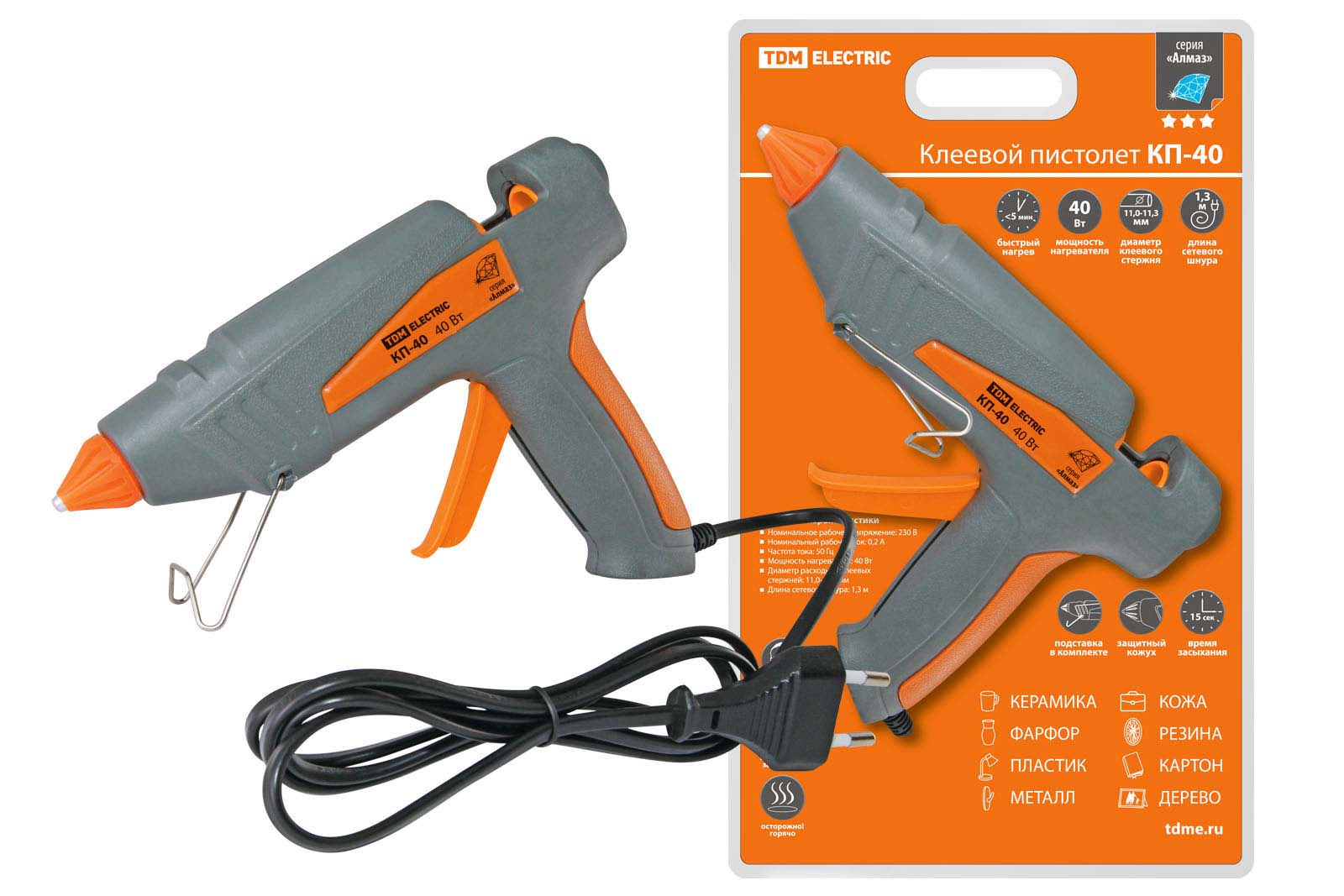 Наименование: Клеевой пистолет КП-40 , 11,3 мм, с подставкой, шнур 1,3 м, 40 Вт, Т=220 С "Алмаз" TDM
