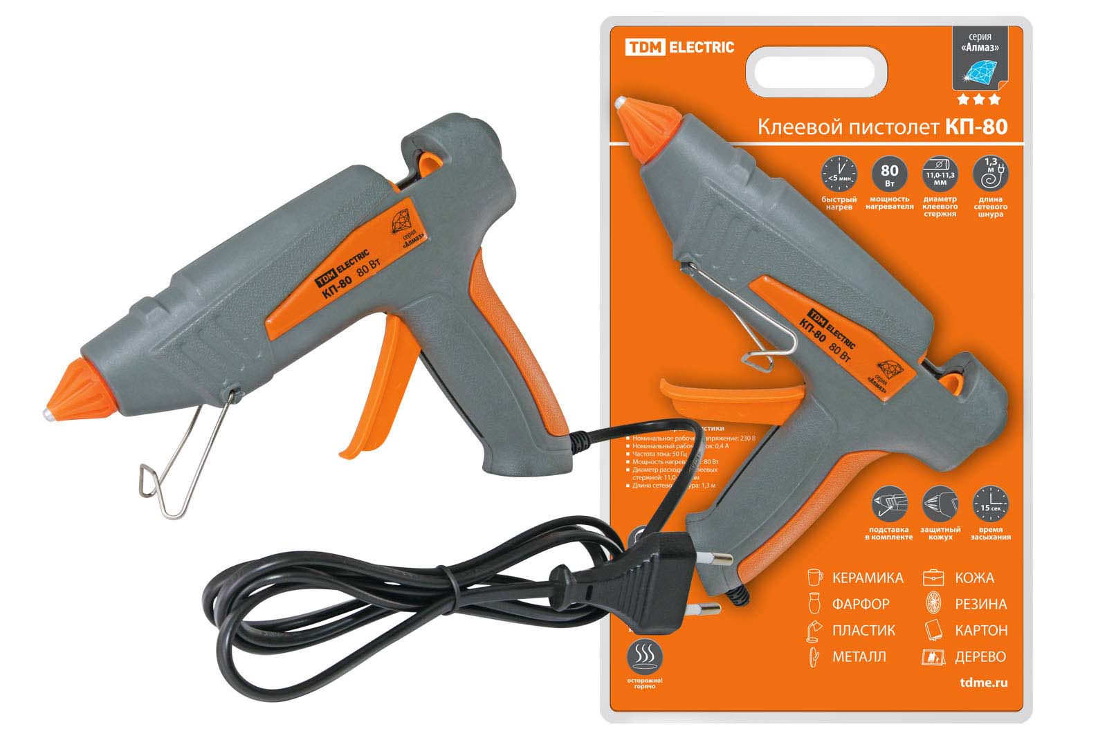 Наименование: Клеевой пистолет КП-80 , 11,3 мм, с подставкой, шнур 1,3 м, 80 Вт, Т=220 С "Алмаз" TDM