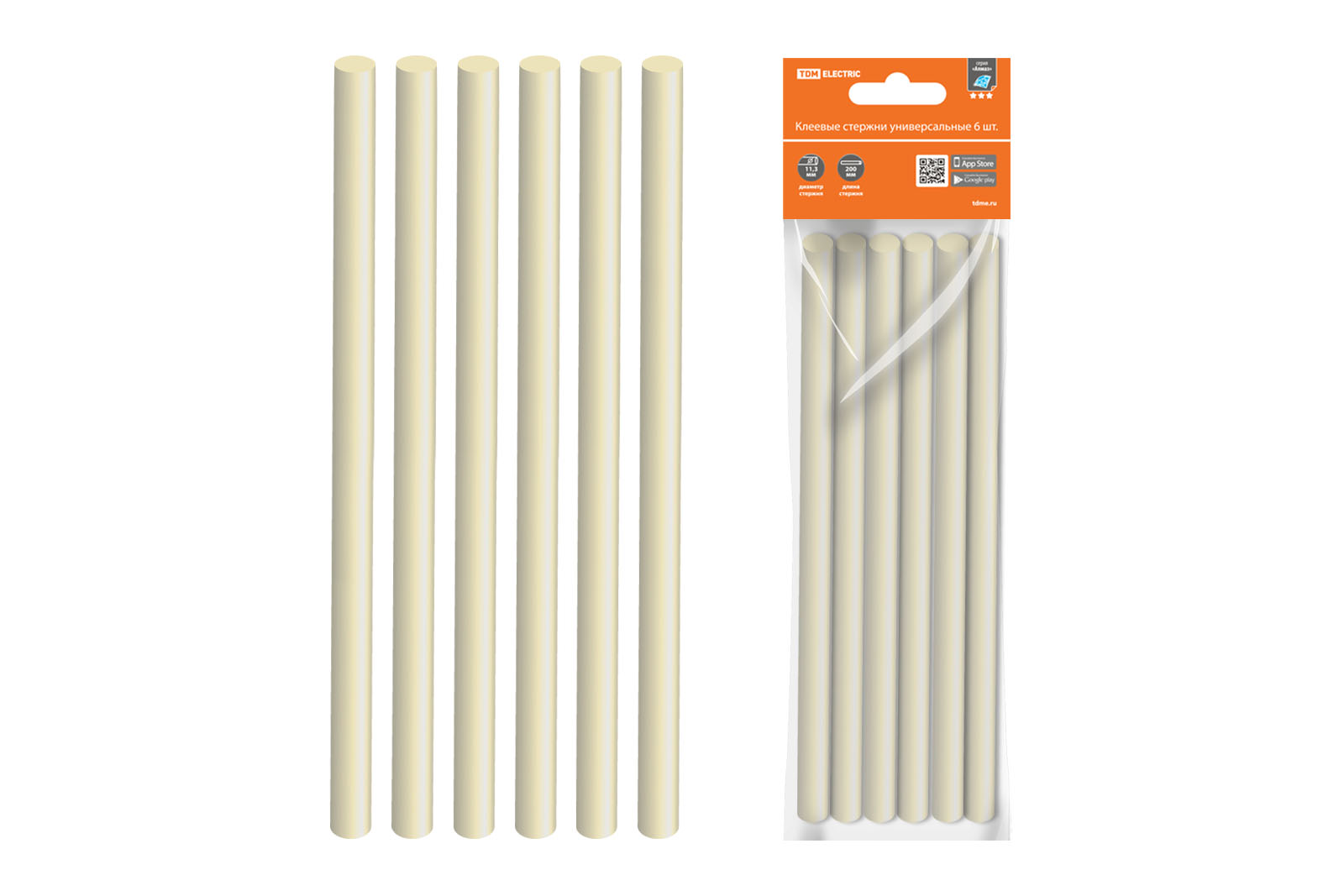 Клеевые стержни универсальные, 11,3 мм x 200 мм, 6 шт, "Алмаз" TDM