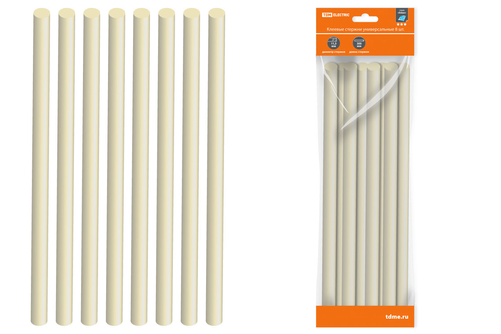 Наименование: Клеевые стержни универсальные, 11,3 мм x 300 мм, 8 шт, "Алмаз" TDM