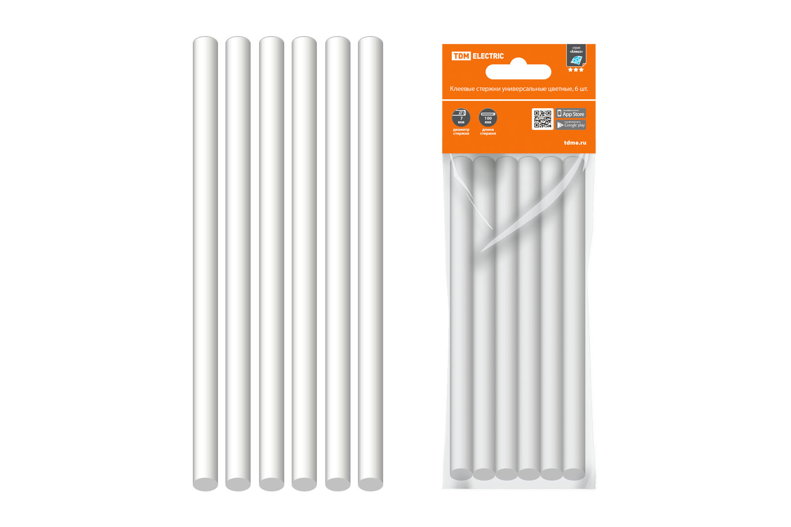 Наименование: Клеевые стержни универсальные белые, 11 мм x 100 мм, 6 шт, "Алмаз" TDM