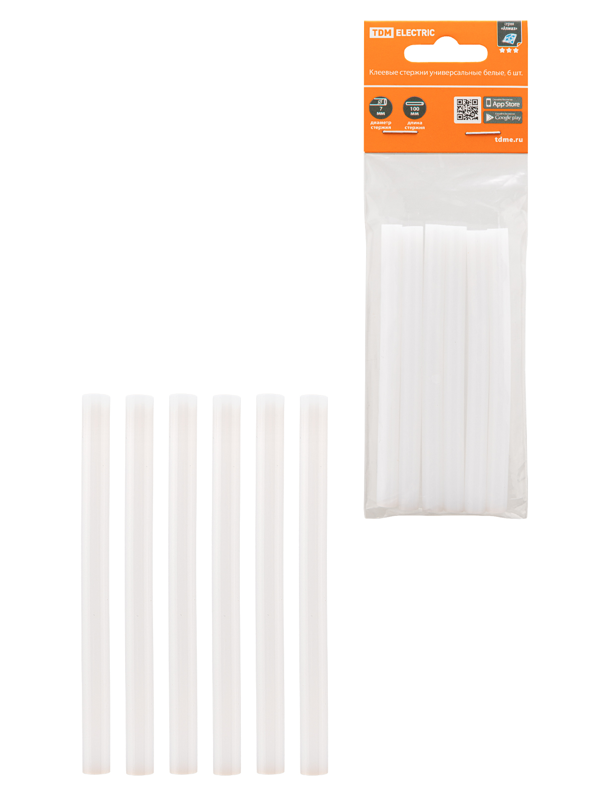 Клеевые стержни универсальные белые, 7 мм x 100 мм, 6 шт, "Алмаз" TDM
