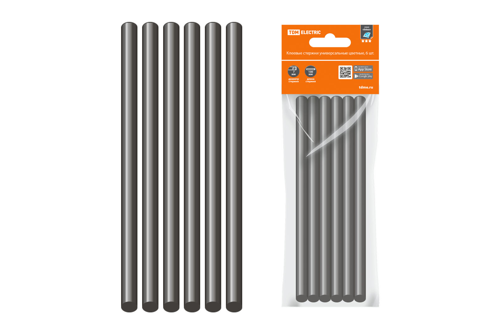 Наименование: Клеевые стержни универсальные черные, 7 мм x 100 мм, 6 шт, "Алмаз" TDM