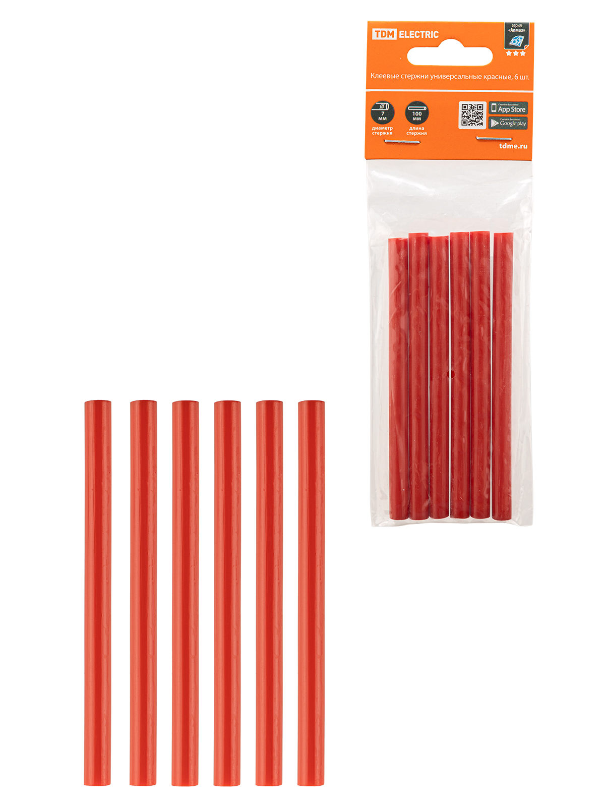 Наименование: Клеевые стержни универсальные красные, 7 мм x 100 мм, 6 шт, "Алмаз" TDM