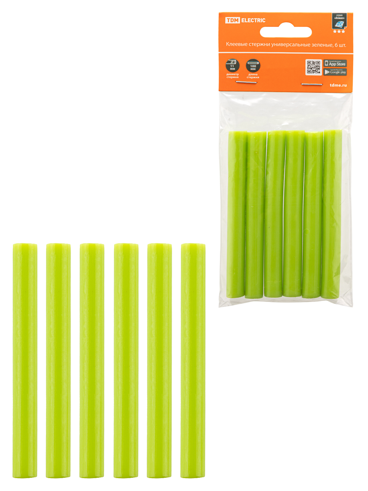 Клеевые стержни универсальные зеленые, 11 мм x 100 мм, 6 шт, "Алмаз" TDM