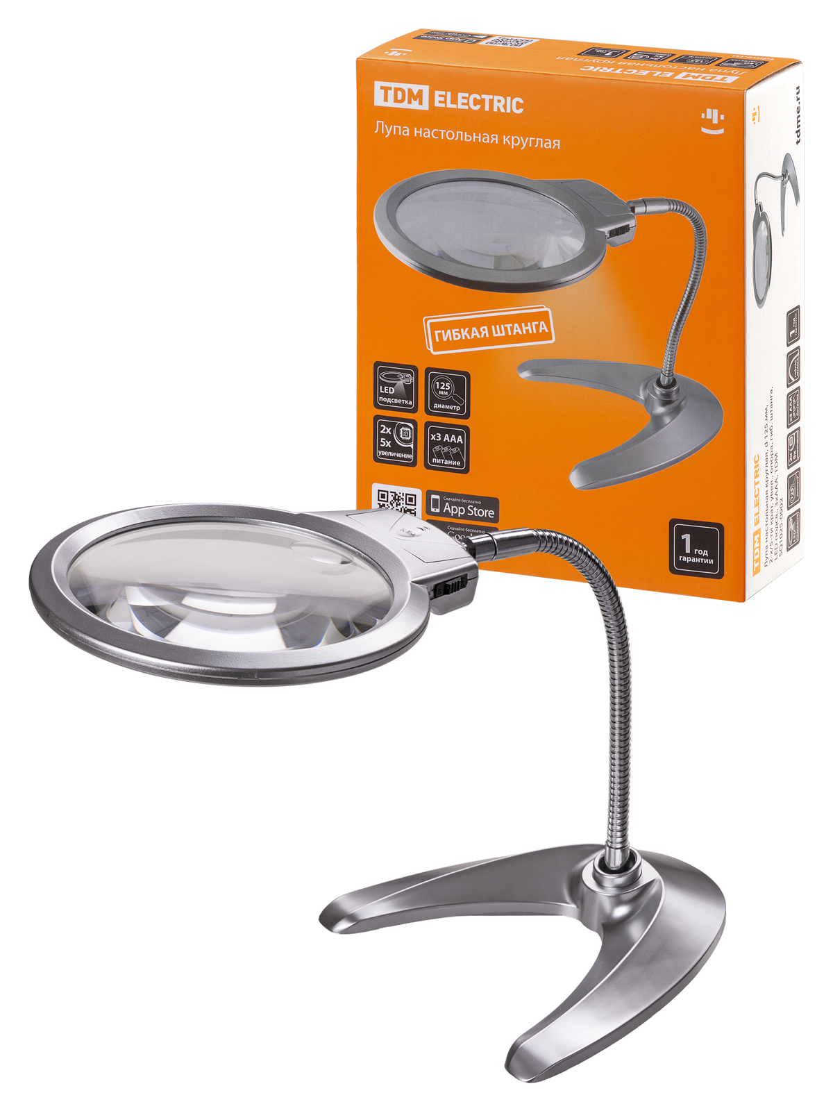 Наименование: Лупа настольная круглая, d 125 мм, 2-х/5-ти крат. увел., опора, гиб. штанга, LED подсв., 3хААА, TDM