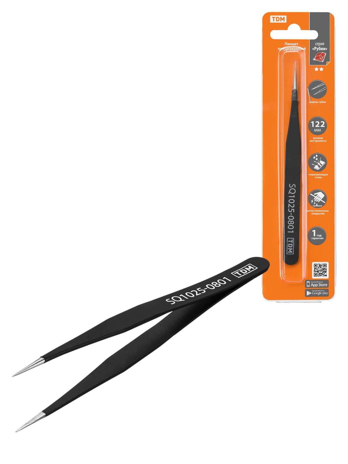 Наименование: Пинцет прецизионный прямой 122 мм, острое жало, нерж., антистатич. покр., блистер, "Рубин" TDM