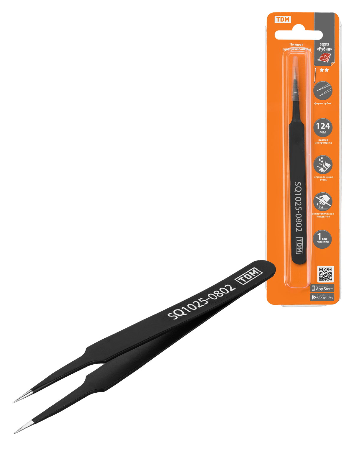 Наименование: Пинцет прецизионный прямой 124 мм, острое жало, нерж., антистатич. покр., блистер, "Рубин" TDM