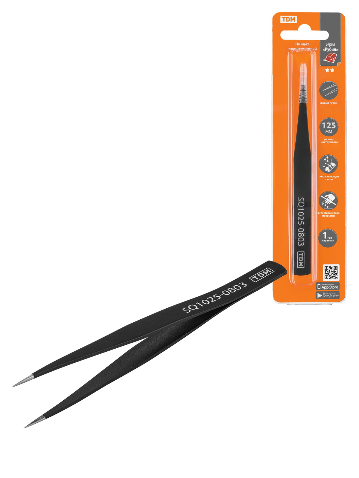 Наименование: Пинцет прецизионный прямой 125 мм, острое жало, нерж., антистатич. покр., блистер, "Рубин" TDM