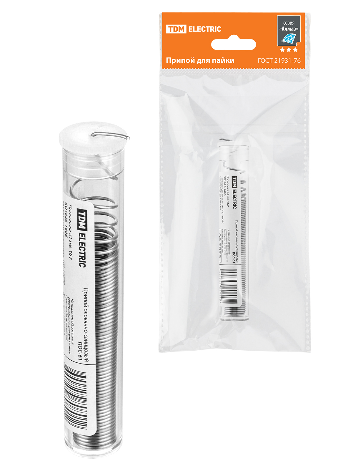 Наименование: Припой ПОС 61, проволока, ГОСТ 21931-76, ?1 мм, 16 г, колба, серия "Алмаз" TDM
